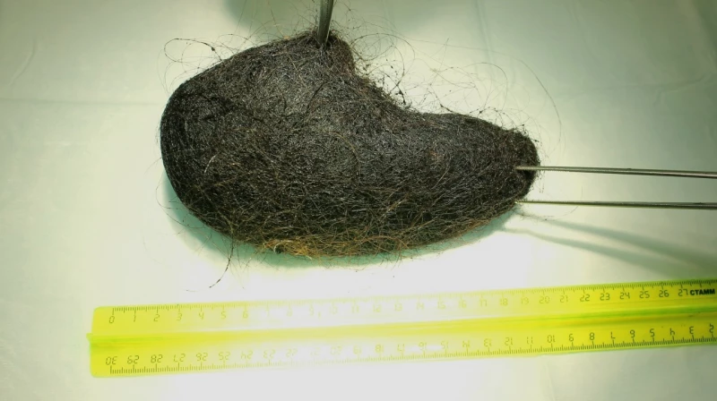 «Скорее всего, волосы частично уходили по пищеварительному тракту, но в какой-то момент они намотались на пищевой комок и начали скатываться. Трихобезоар оказался очень плотным, как валенок. Разделить его на части не представлялось возможным». — рассказала заведующая отделением Нина Мамонтова.