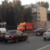 Из-за столкновения легковых автомобилей заняты обе полосы движения. Машины вынуждены передвигаться по газонам и тротуарам.