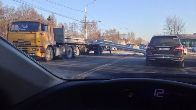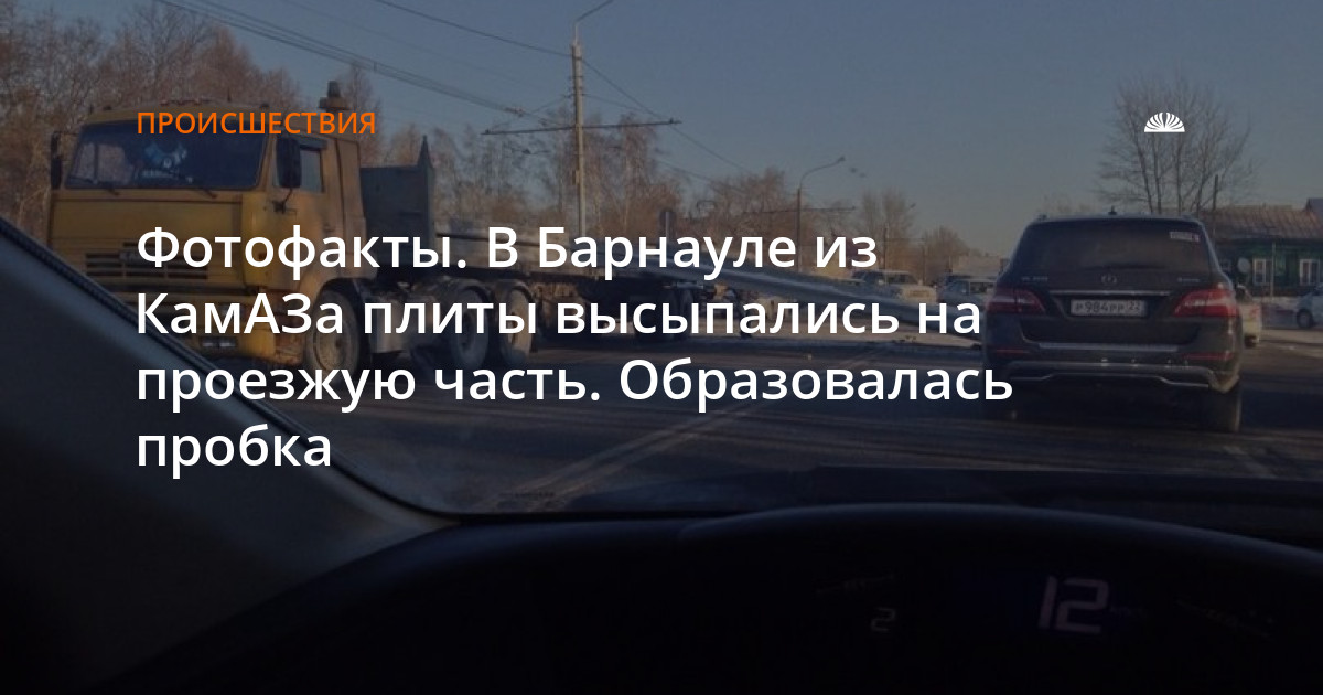 Очевидцы из паблика Barnaul22 отмечают, что плиты выпали на встречную полосу. В них въехала Toyota Avensis. Образовалась большая пробка в обе стороны. Барнаульцы пишут, что стоят в пробке больше часа.