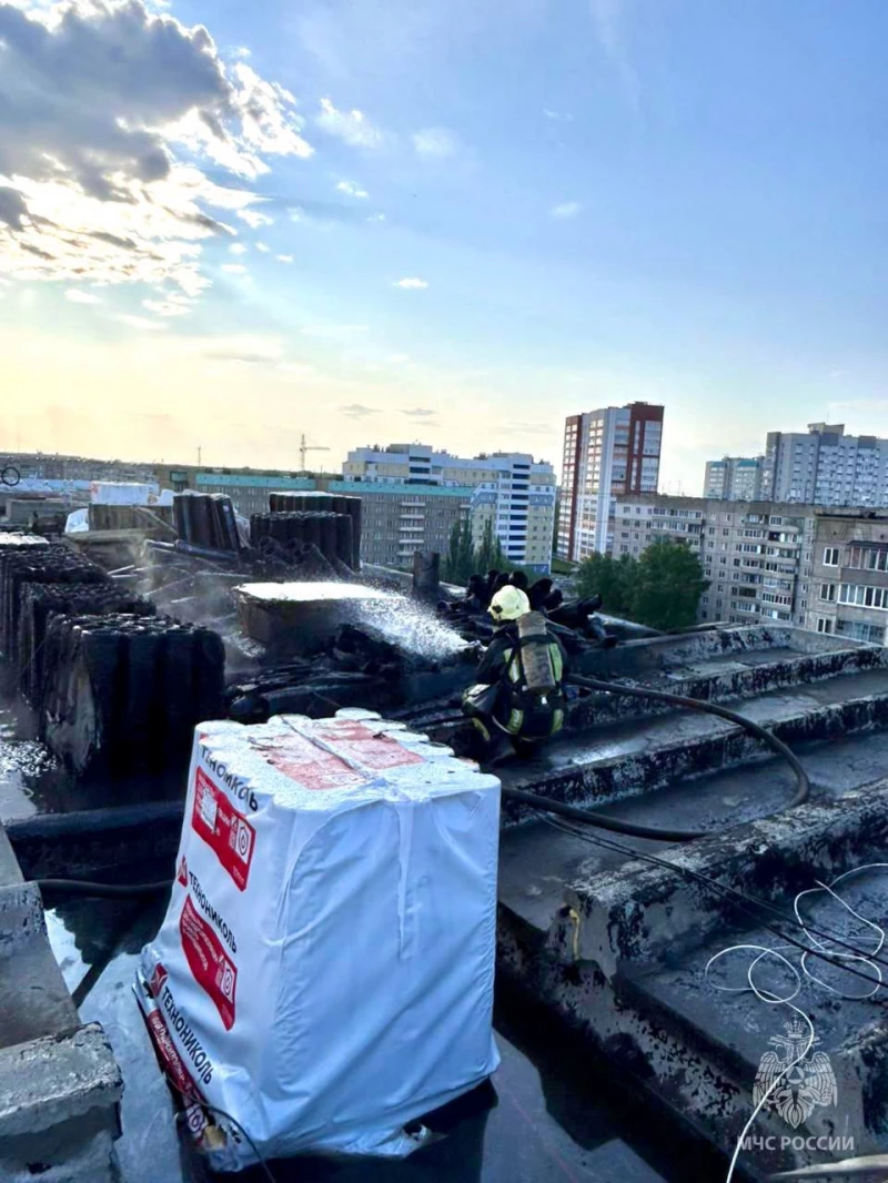 На площади 40 кв. м загорался битум. Сейчас огонь в здании на ул. Юрина, 202 локализировали.