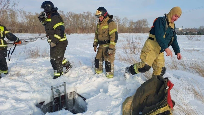 Сотрудники МЧС России вытащили ребенка с помощью лестницы. Мальчик все это время сидел в ледяной воде.