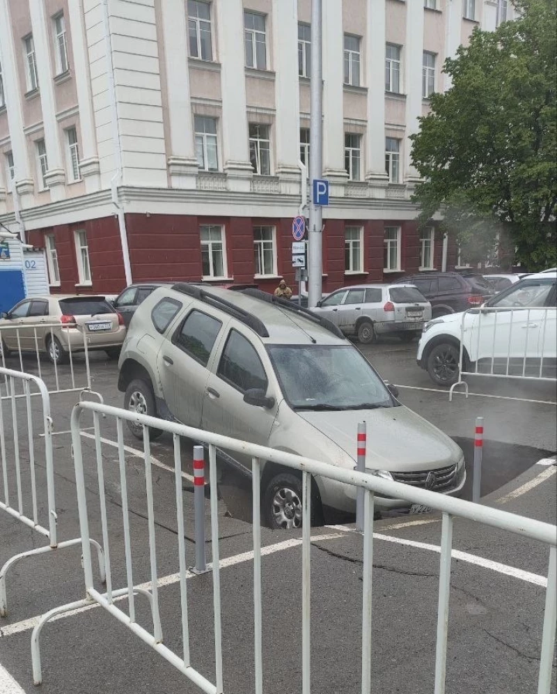 По данным СГК, повреждение дороги выявили 13 мая в ходе опрессовки. В результате образовалась промоина и просадка асфальта, где был припаркован автомобиль.