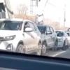 Минимум пять автомобилей пострадало. На месте происшествия образовалась сильная пробка.