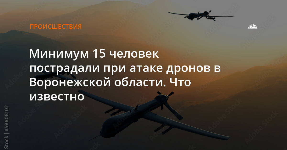 При падении сбитых дронов в центре Воронежа пострадали около 15 человек, некоторым потребовалась медицинская помощь. В одном из районов области госпитализирована женщина с ранением плеча.
