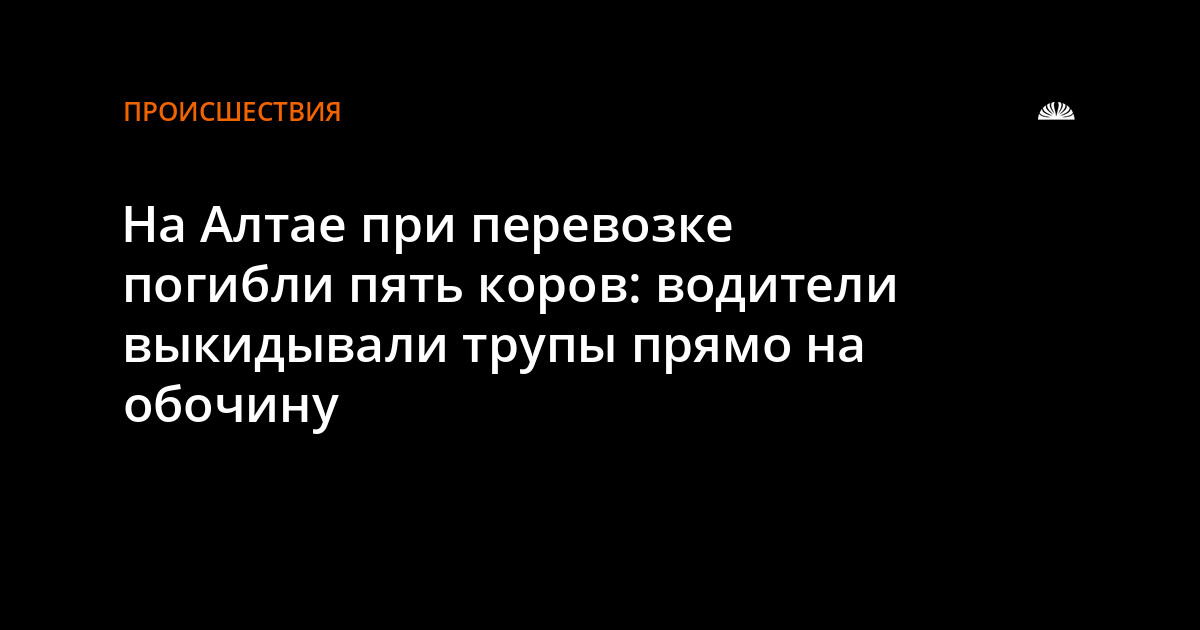 "Согласно представленным ветеринарным сопроводительным документам животные направлялись из Республики Алтай в Республику Казахстан. Из объяснительной водителя автомобиля следовало, что в пути произошло дорожно-транспортное происшествие, в результате которого прицеп перевернулся и пять голов крупного рогатого скота погибло. От трупов животных нарушители решили избавиться и выбросили рядом с дорогой в районе села Покровка", - говорится в сообщении.