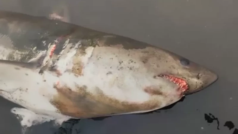 Тело морского хищника обнаружили местные жители и поделились фотографиями в соцсетях.