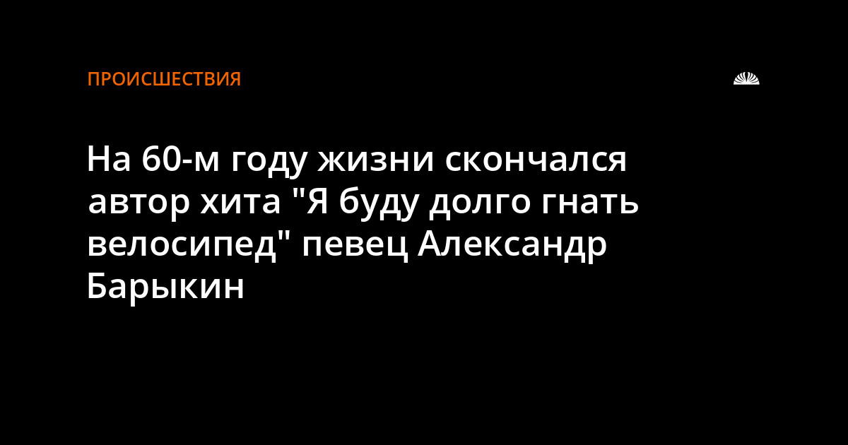 В середине января Барыкин оказался в больнице Брянске в кардиологии. В больницу популярного певца, гитариста и композитора, автора хита "Букет" ("Я буду долго гнать велосипед") доставили на карете "Скорой помощи" в тяжелом состоянии. Потом певец пошел на поправку и был выписан.