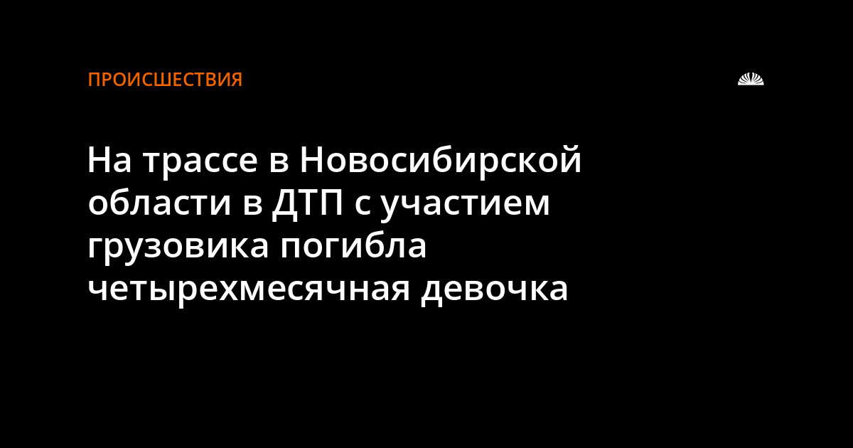Как сообщает ГУ МВД по Новосибирской области, 28 июня в 20.30 на трассе М51 в Коченевском районе произошло лобовое столкновение двух легковых автомобилей. 26-летний новосибирец, управляя автомобилем Toyota Carina, на 69-м километре при совершении обгона выехал на полосу встречного движения, где столкнулся с грузовиком Volvo VHL. В результате столкновения от полученных травм скончалась четырехмесячная девочка, находившаяся на заднем сиденье автомобиля Toyota Carina на руках у матери. Мать ребенка, 24-летняя женщина, госпитализирована в больницу с тупой травмой живота.