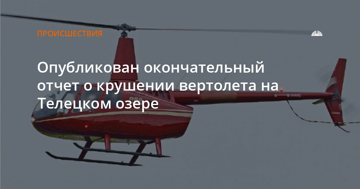 19 июля в 23:45 местного времени в акватории Телецкого озера в Турочакском районе пилот вертолета Robinson упал в воду и затонул.