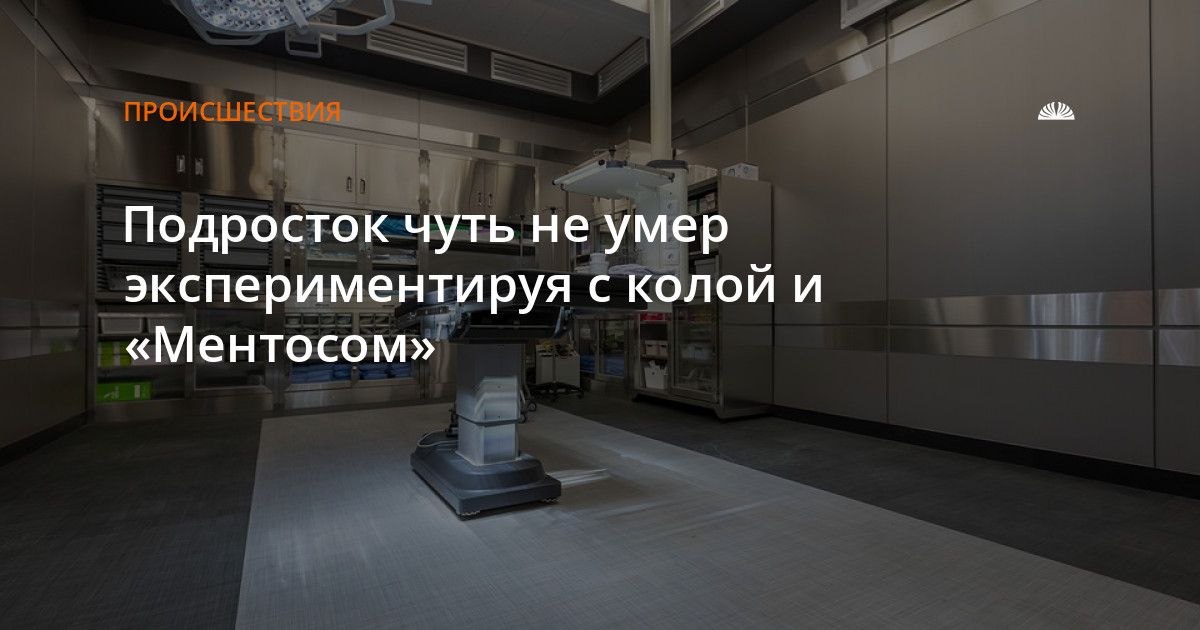 Двое подростков посмотрели видео, где мужчина выпил литр колы и съел упаковку «Ментоса», после чего начал далеко плевать. Решив повторить эксперимент, подростки купили колу и «Ментос». Начали проводить эксперимент, но одного из них начало рвать колой с кровью, появилась пена из носа.