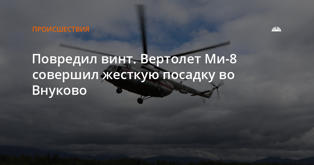 Вертолет зацепил землю лопастями. При этом он получил повреждения.