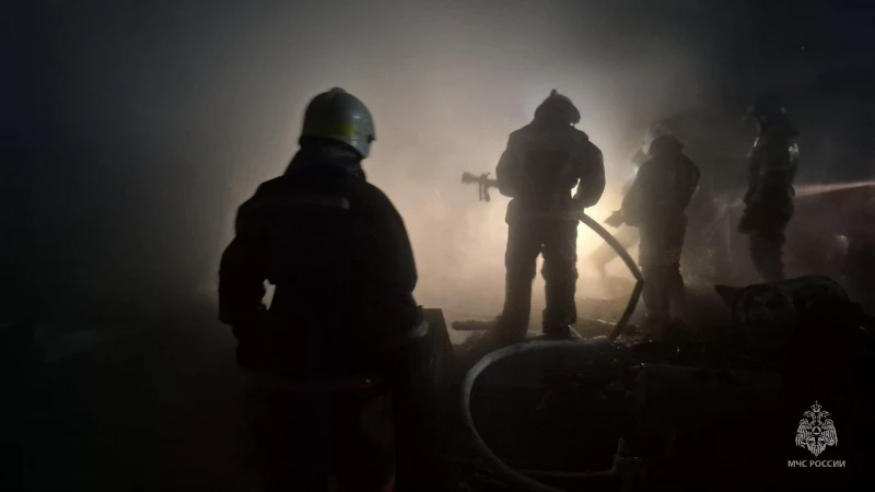 Огнеборцы проложили магистральную линию из ближайшего водоема, чтобы справиться с пожаром на площади в 250 кв.м. Огонь тушили 27 человек, которые использовали семь единиц техники.