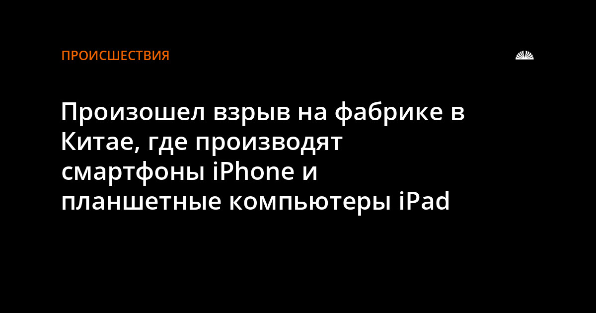 Мощный взрыв произошел 20 мая на предприятии компании Foxconn неподалеку города Чэнду в китайской юго-западной провинции Сычуань. Как пишет The Guardian, подтверждена гибель двоих человек, ранены более десяти. Представители компании говорят,