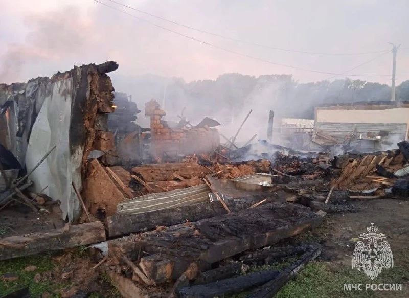 На животноводческой ферме в селе Песчаное произошел огромный пожар — загорелось строение на 120 «квадратов». Во время тушения спасатели обнаружили пять тел. Личности погибших пока устанавливают.