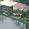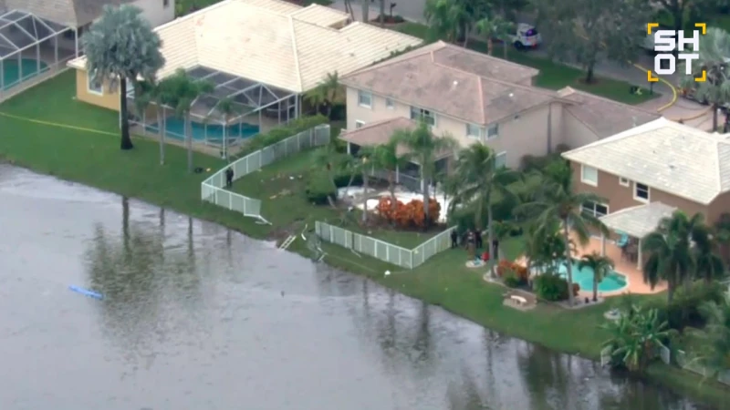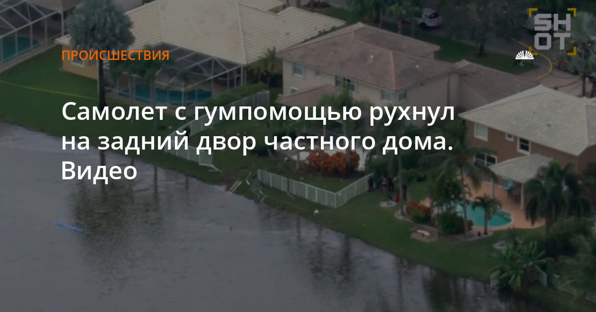 Он миновал жилые здания, снес деревья и ограждение, затем рухнул в озеро, разбросав фрагменты корпуса вокруг.