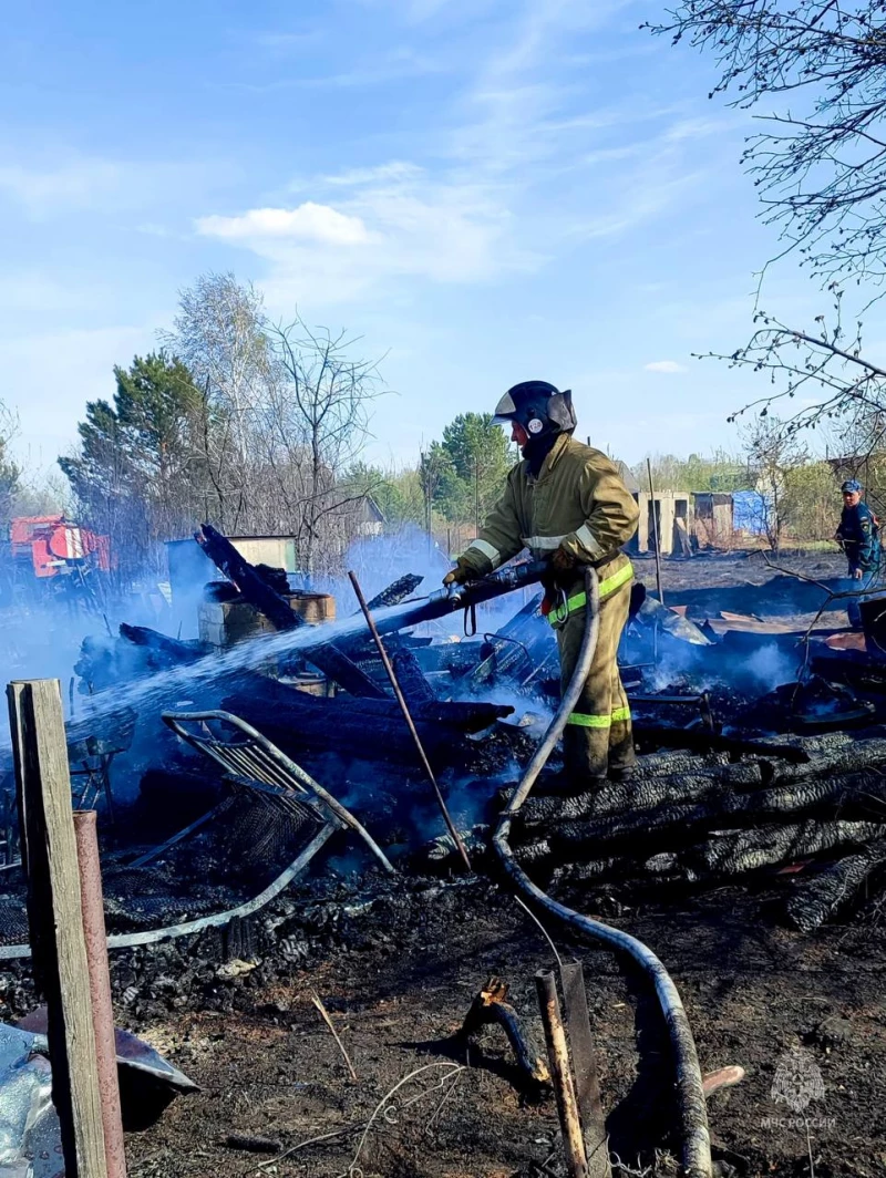 Из них два жилых и два бесхозных садовых домика. Площадь пожара составила около 120 кв.м.