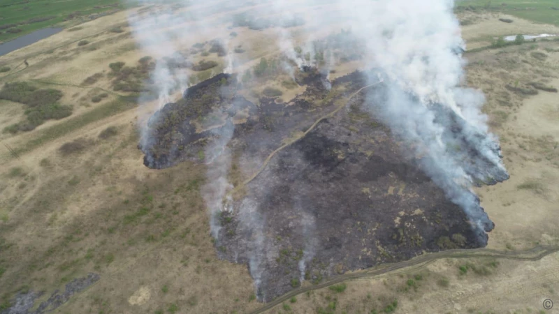 Для оценки масштабов пожара используют дроны, определяют площадь очага. Угрозы для жилых домов нет, обстановку контролируют.