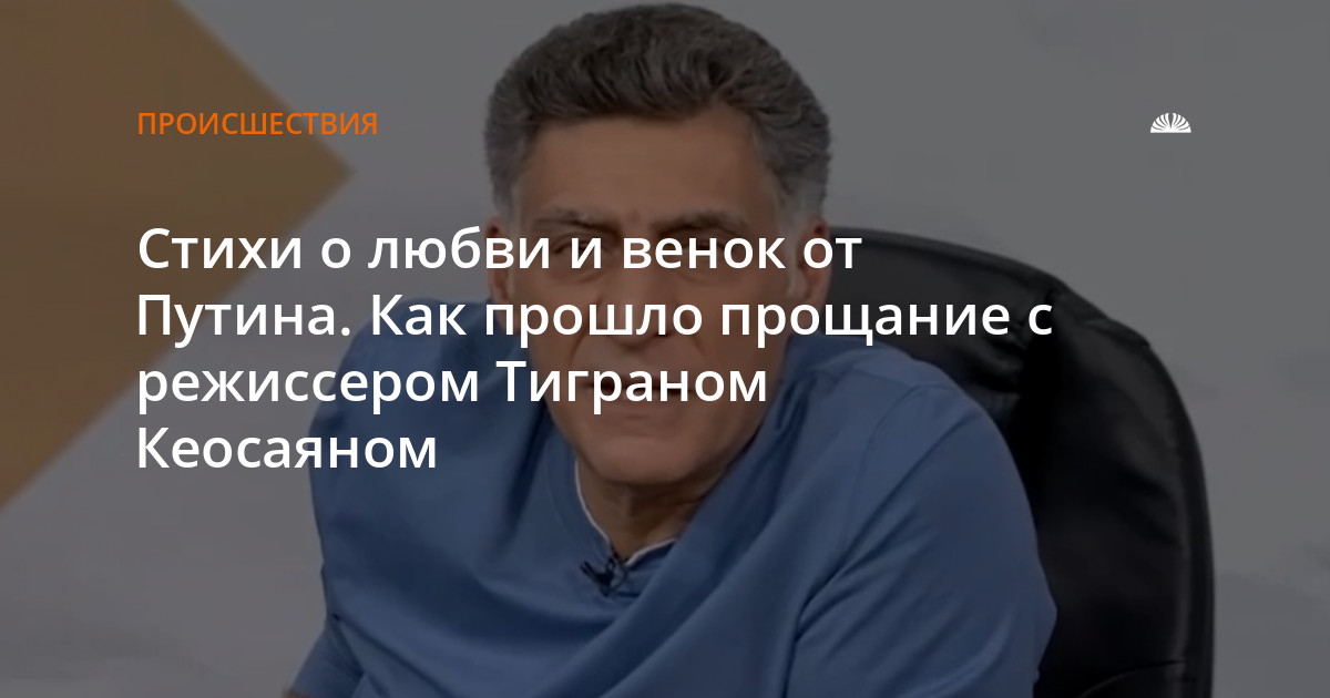 Президент России Владимир Путин отправил венок на церемонию прощания с режиссером Тиграном Кеосаяном, передает РИА Новости.