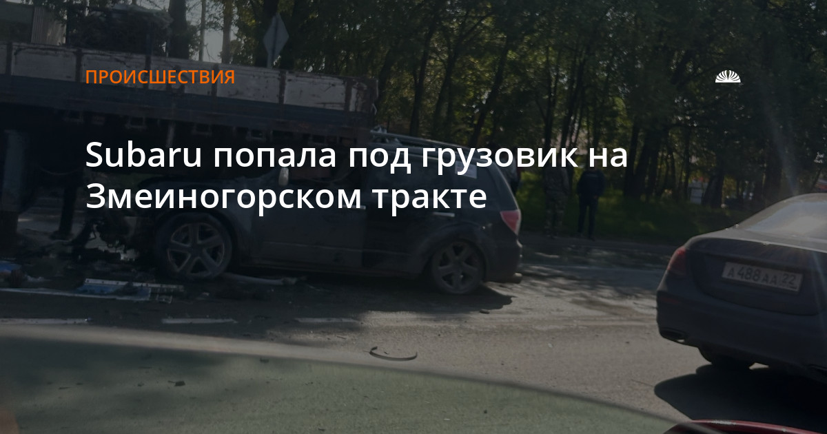 В аварии столкнулись автомобиль Subaru и грузовой автомобиль, в результате чего легковой автомобиль оказался под прицепом грузовика.