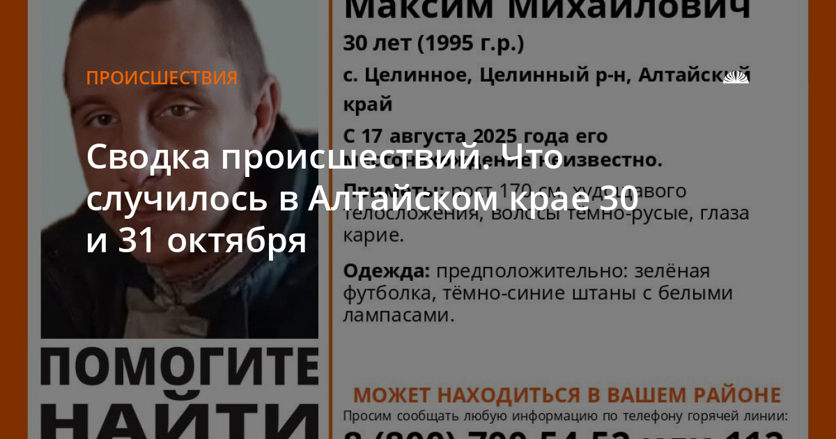 - В селе Целинное 17 августа пропал 30-летний Максим Вишняков. Его рост 170 см, худощавого телосложения, волосы темно-русые, а глаза карие.