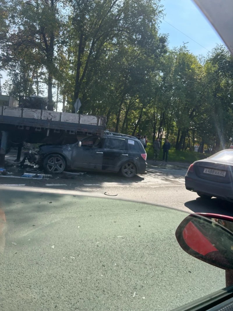 - На Змеиногорском тракте в Барнауле автомобиль Subaru попал под прицеп грузовика после того, как в него врезался попутный автомобиль Daewoo. Водитель Subaru в больнице с травмами.