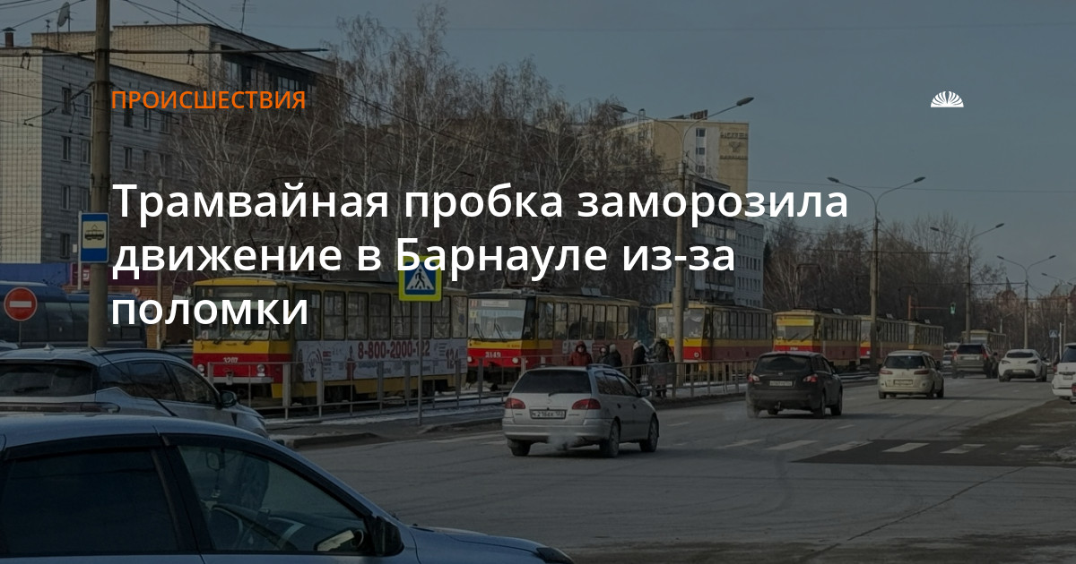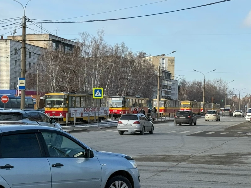 Пробка образовалась из-за поломки впереди идущего состава. Трамваи больше 20 минут не могли двинуться дальше.