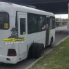 Люди оперативно вышли из автобуса, а он остался стоять, накренившись вбок.