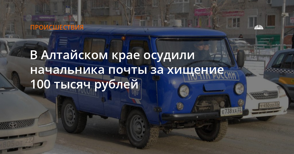 В Алтайском крае осудили начальника почты за хищение 100 тысяч рублей