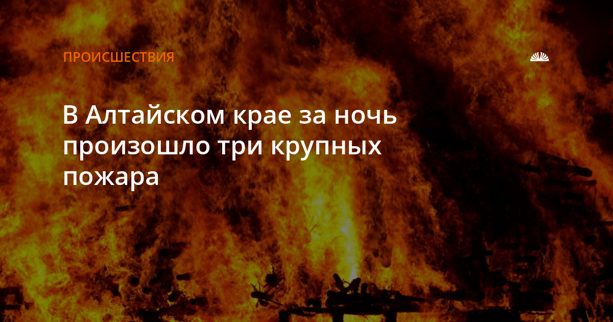 Первый пожар случился в Бийске на улице Верхне-Цесовской — горели частный дом и надворные постройки. Площадь возгорания составила около 100 квадратных метров. К счастью, никто не пострадал.