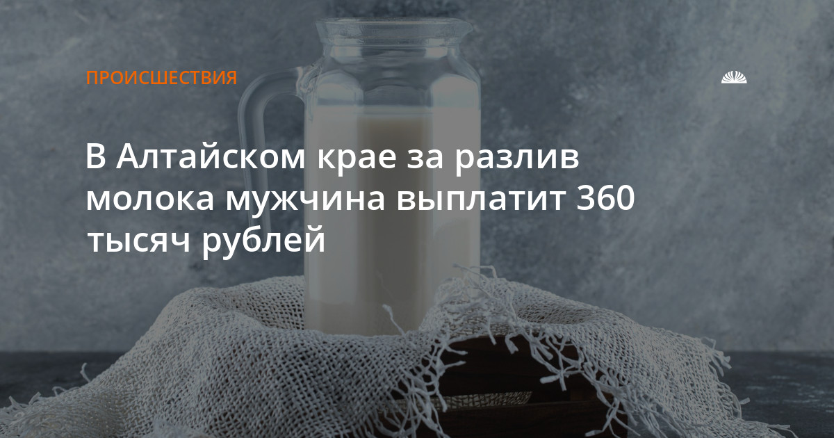 Суд счел действия водителя проявлением преступной небрежности и постановил взыскать с него 361 тыс. рублей. Из этой суммы 256 тыс. рублей пойдут на ремонт автомобиля, 105 тыс. рублей — компенсация за утрату молока. Кроме того, водитель должен выплатить 11 тыс. рублей в счет госпошлины.