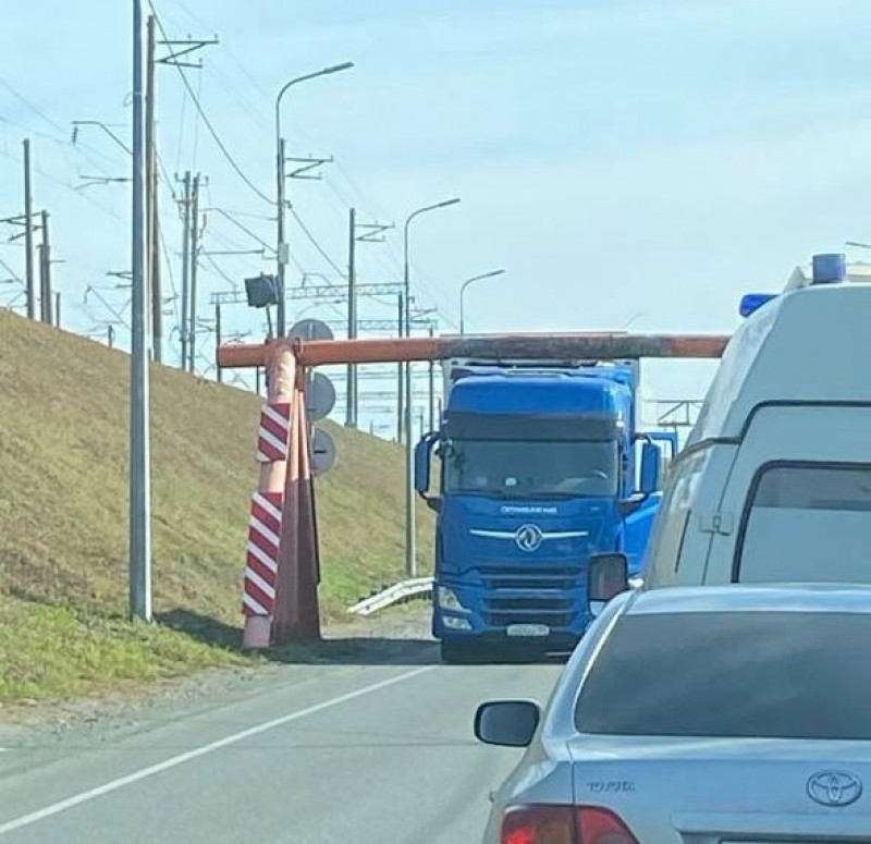 Ранее очередная фура пыталась проехать через ограничитель на въезде в Барнаул.