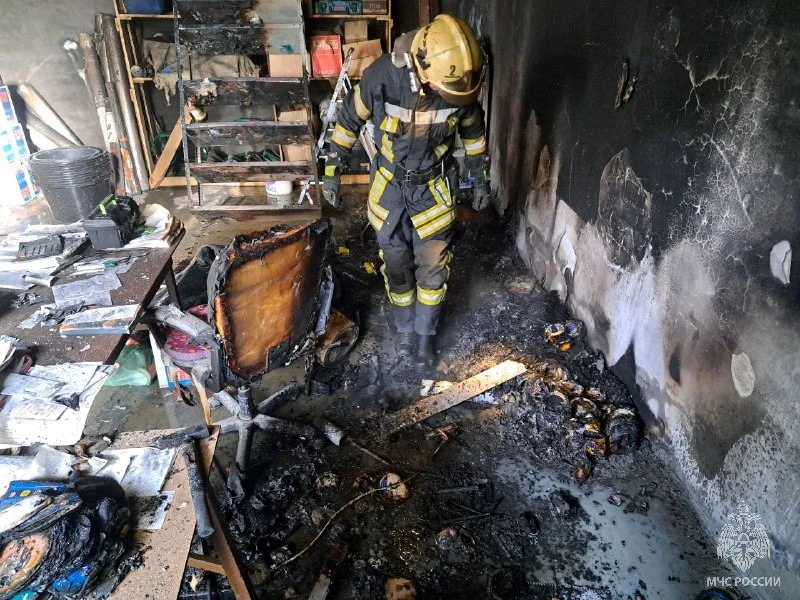 Выяснилось, что очаг возгорания находился на втором этаже в помещении временной бытовки. Площадь пожара оказалась небольшой — около 5 кв. м, пострадало имущество внутри комнаты. К моменту приезда спасателей пламя уже погасло. Никто не пострадал.