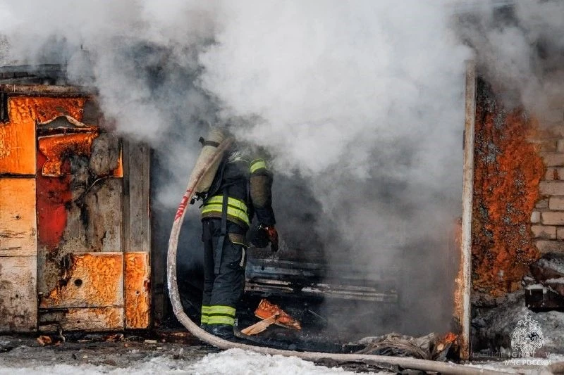 Днем 17 декабря на улице Трактовой произошел пожар в гаражных боксах. В одном из гаражей полностью сгорел автомобиль.