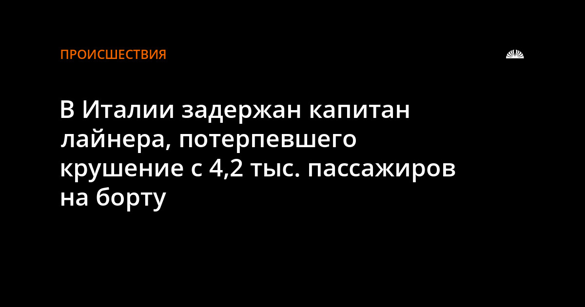 Капитан потерпевшего крушение у берегов Тосканы итальянского круизного лайнера Costa Concordia Франко Скеттино задержан полицией, пишет Газета ру.