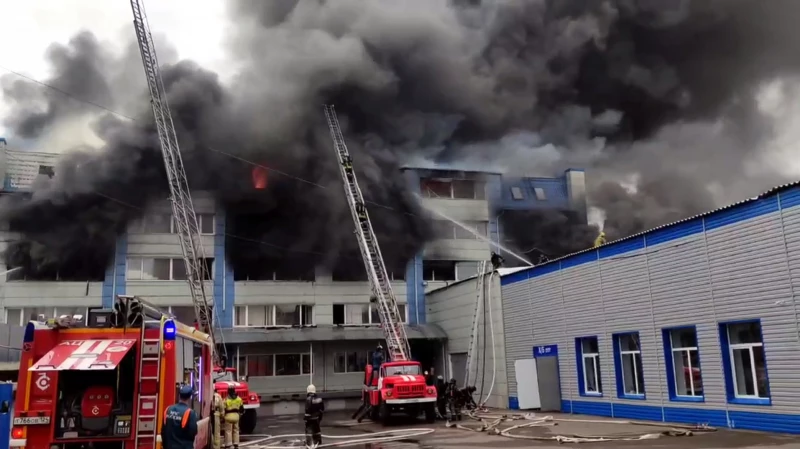 Информация о возгорании в пятиэтажном административно-производственном здании поступила в оперативные службы в 14:43 по местному времени.