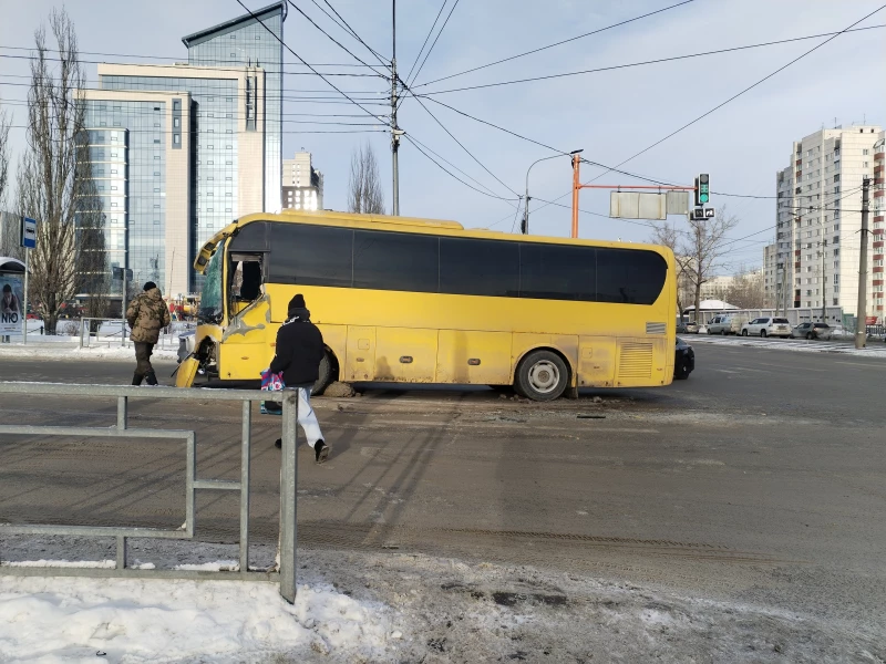 В центре Барнаула в результате ДТП у автобуса разворотило бампер