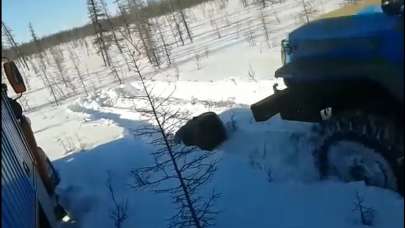 На кадрах видно, как водитель одного из "Уралов" несколько раз переезжает медведя грузовиком. При этом на заднем плане слышен голос "Дави, дави его". Медведь пытается подняться, но оказывается зажатым между двумя машинами.