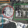 Расположение объектов на карте: красный маркер — нефтебаза БРСМ, оранжевый — полигон для стрельбы, зеленый — военные склады, синий — нефтебаза KLO.