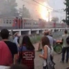 ЧП произошло вечером 7 августа на железнодорожной станции Электрогорск в Подмосковной области. В один из пригородных поездов попал разряд молнии. По словам очевидцев, после удара, состав загорелся, пошел сильный дым, а провода заискрились.