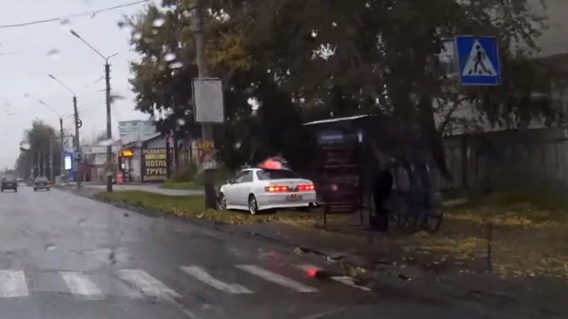 Происшествие было записано очевидцем на видеорегистратор и выложено в соцсети. На записи видно, что водитель на Toyota Mark сбил пожилого пешехода и врезался в столб. Авария на 46-й секунде.