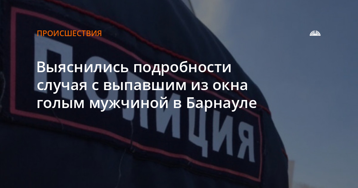 27 июля в 09:20 в полицию Барнаула обратилась женщина 1975 года рождения и сообщила, что с восьмого этажа многоквартирного дома выпал мужчина 1976 года рождения. Очевидцы из социальных сетей рассказали, что в момент падения мужчина находился на балконе и просил вызвать полицию. Ранее он не обращался в органы внутренних дел.