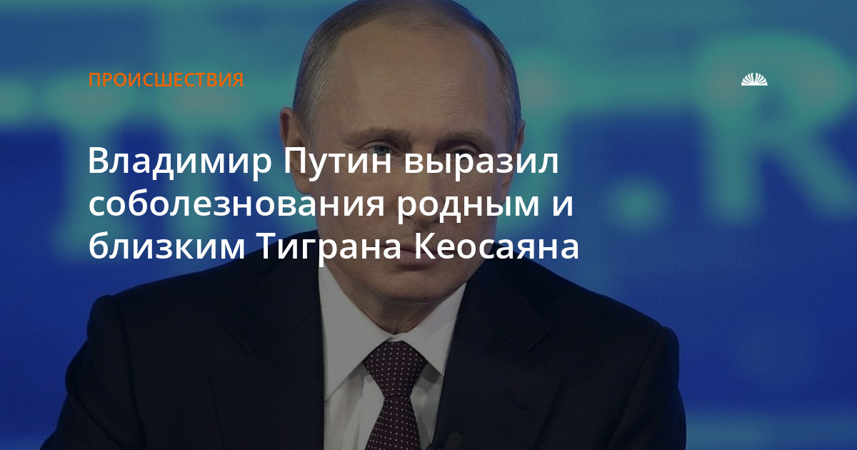 Владимир Путин выразил соболезнования матери Тиграна Кеосаяна Лауры Ашотовны и супруге Маргарите Симоньян.