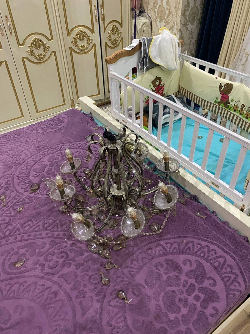 В жилом доме рухнула люстра прямо возле детской кроватки.