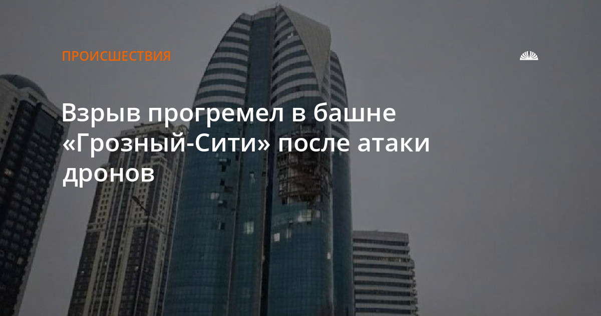 С утра пятницы в сети распространяются видео и фото с горящей высоткой в Грозном. На кадрах видно, что фасад здания поврежден, а внутри пылает пожар. Очевидцы предполагают, что взрыв случился из-за атаки дронов, но комментариев от властей Чеченской Республики пока не было.