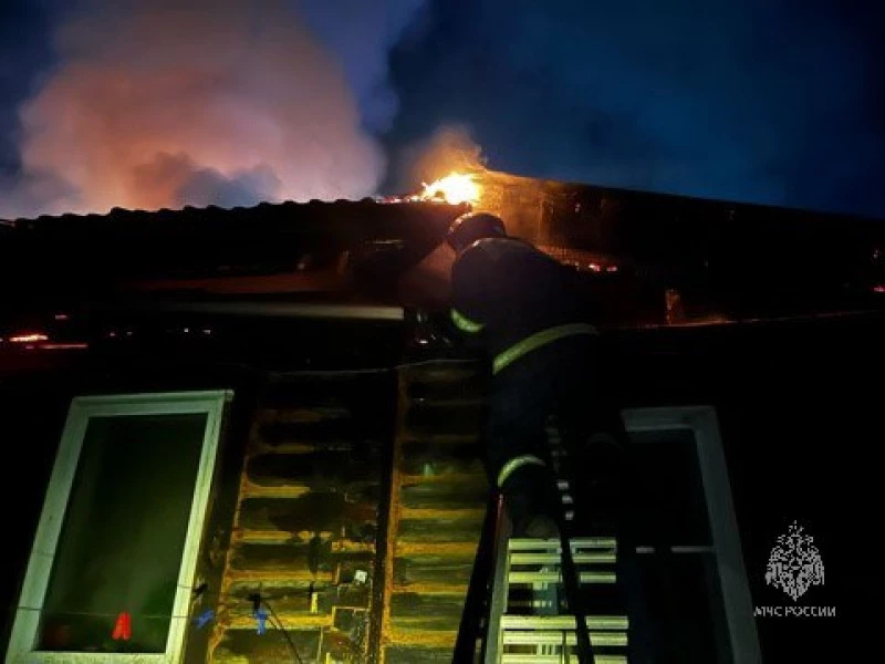 На момент прибытия первых подразделений горели кровля и стены дома. Площадь пожара составила около 70 кв.м.