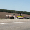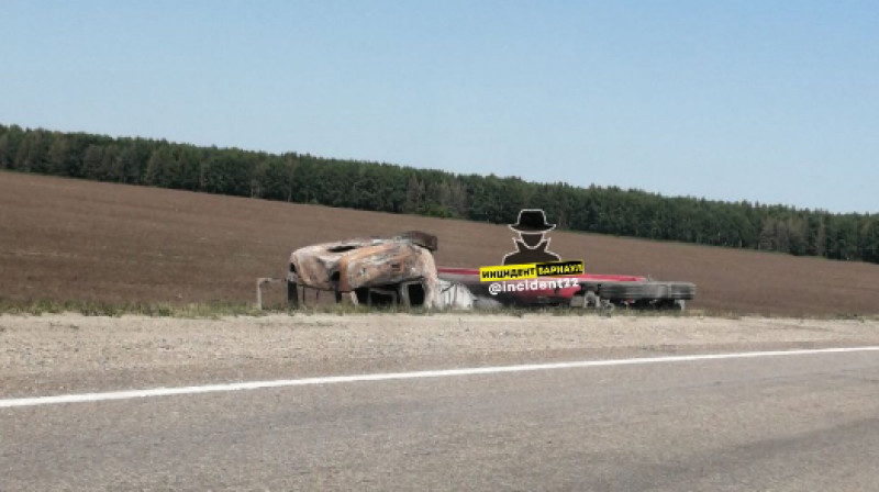 "Грузовик съехал в кювет, перевернулся на бок и загорелся, а легковая машина перевернулась на крышу", - говорится в сообщении.
