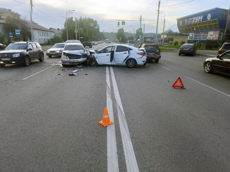«Житель Алтайского края за рулем Toyota Sprinter при перестроении не уступил дорогу транспортному средству, движущемуся попутно, и допустил столкновение с автомобилем Hyundai Solaris, за рулем которого находился 29-летний горожанин. От удара автомобиль Hyundai Solaris отбросило на встречную полосу, где он столкнулся с Toyota Premio под управлением 25-летнего местного жителя», – рассказали в ведомстве.