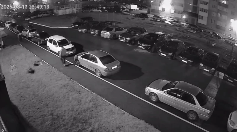 Поздно вечером 13 августа на улице Анатолия, 100 камеры зафиксировали яркую вспышку и громкий хлопок. После чего сработали сигнализации автомобилей.