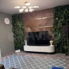 Вся квартира выполнена в светлых оттенках, но в каждой комнате есть детали стиля «джунгли». В ванной, туалете и в зале стены отделаны тропическими растениями.