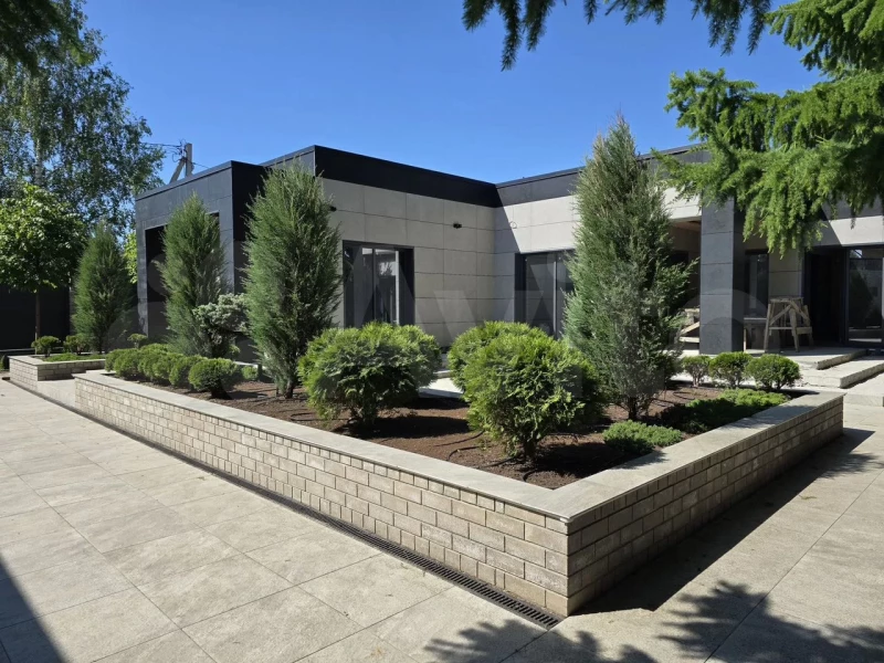 Дом выполнен из кирпича с фасадами из итальянского керамогранита, с витражными окнами, свободной планировкой и высокими потолками. В доме установлены две премиальные системы вентиляции с рекуперацией и увлажнением. Отделка выполнена с использованием натурального камня, испанского керамогранита, дизайнерских светильников Италии и Германии, а также сантехники премиальных брендов.